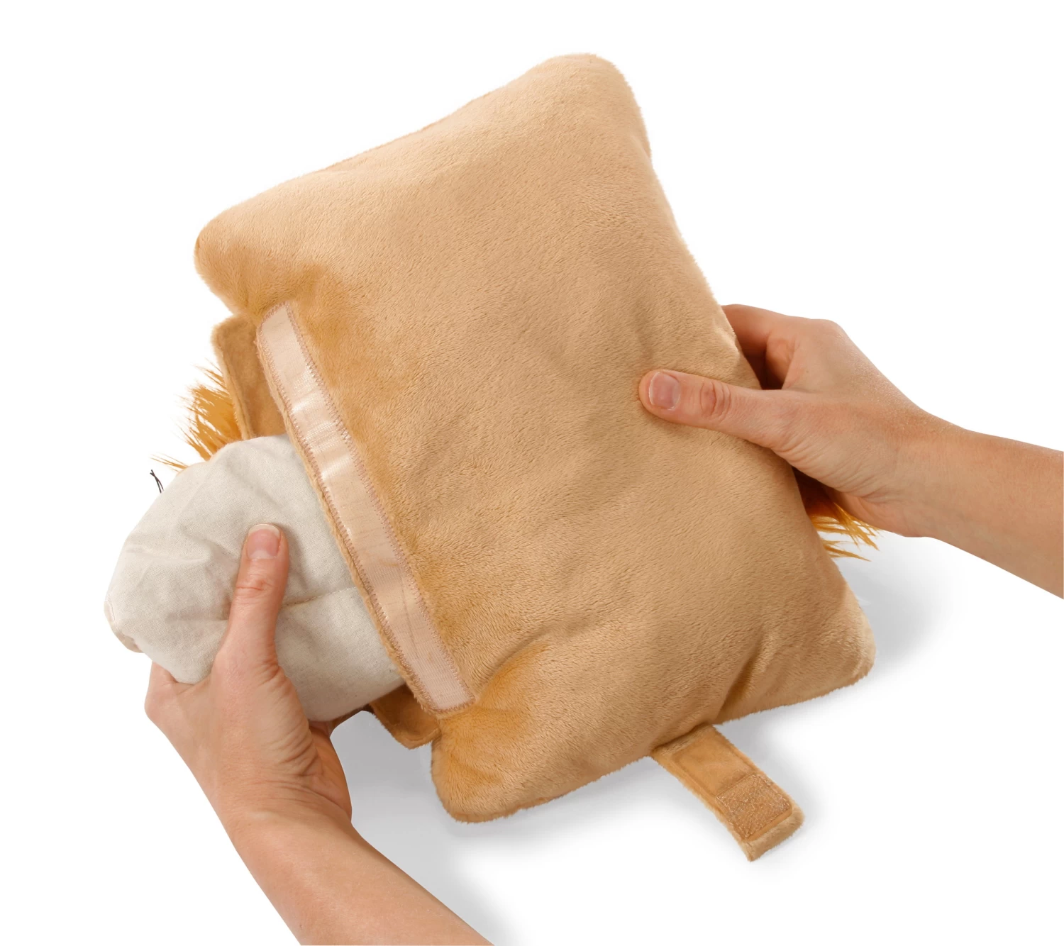 Mit einem Handgriff lassen sich die waschbaren 2-in-1 NICI Dream Friends kinderleicht und schnell durch Lösen des Klettverschlusses in bequeme, komfortable Schlaf- und Kuschelkissen verwandeln.
