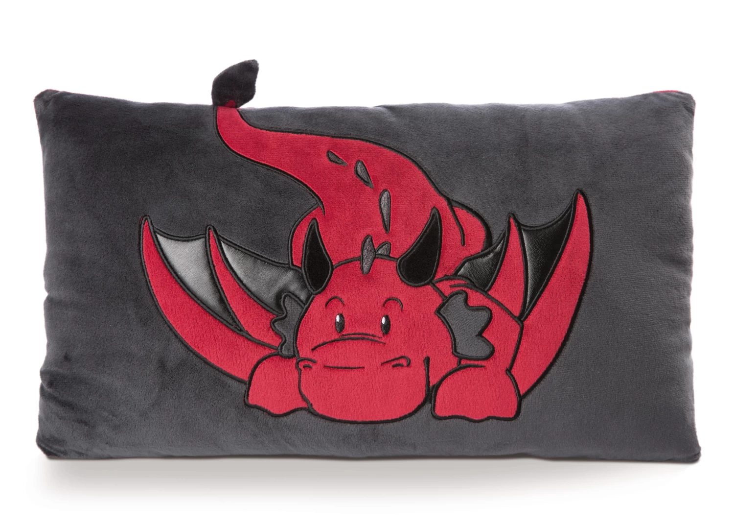 Kuschelig weichen Kissen aus Plüsch, teilwese Kunstledereinsätze an den Flügeln und bestickten Details