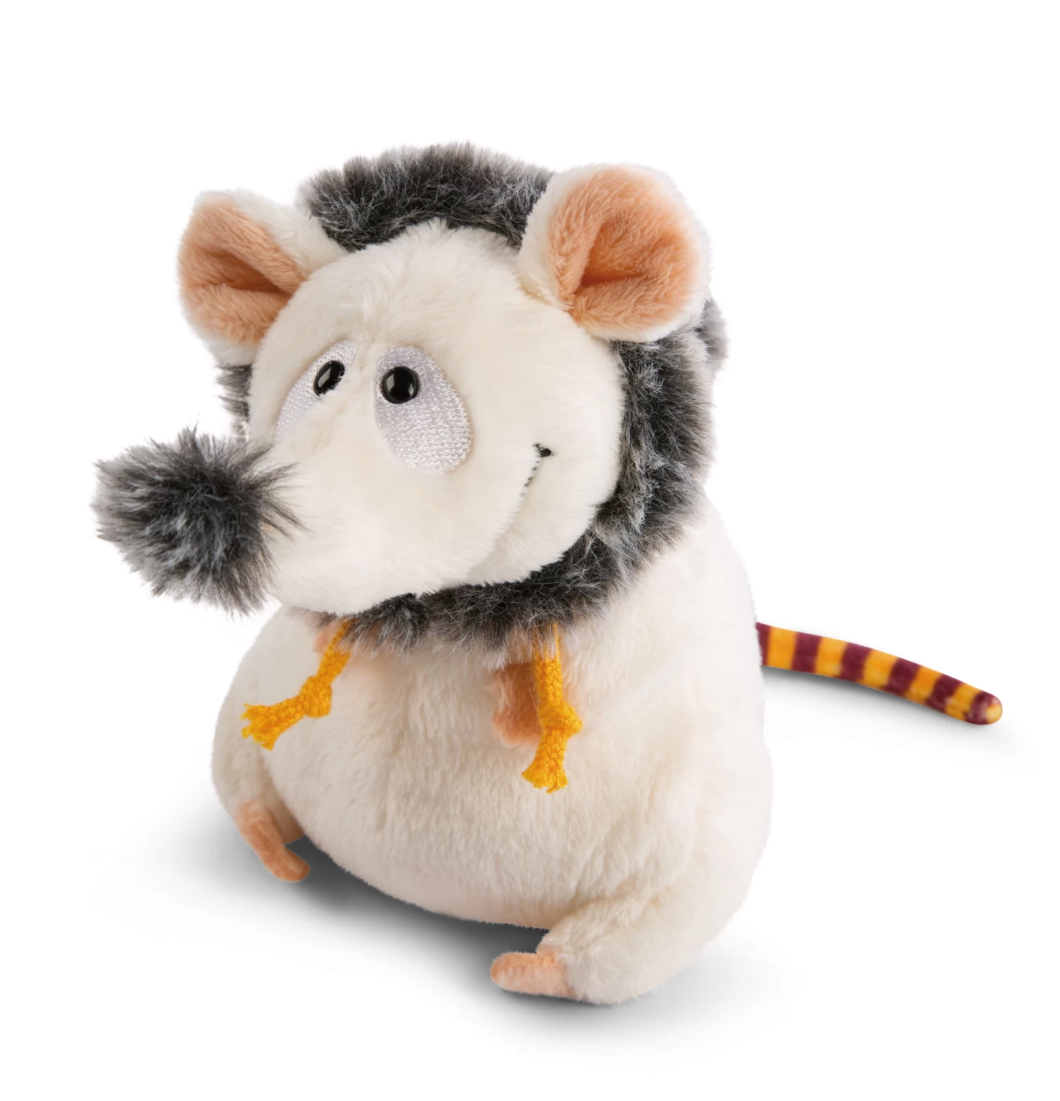 Mit Kapuze, die rauf- und heruntergezogen werden kann. Diese ist an der Maus befestigt und kann nicht ganz abgenommen werden.