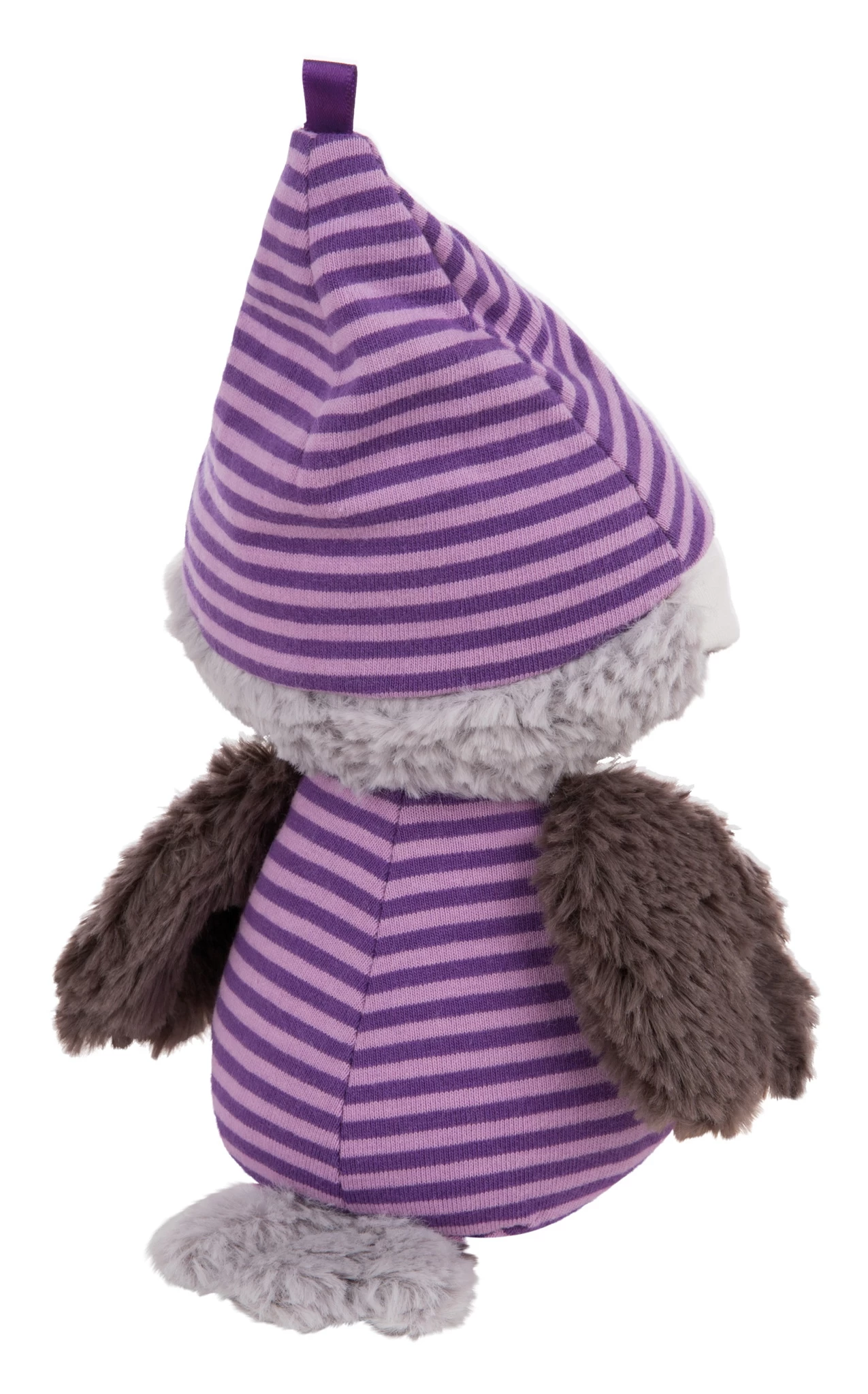 Damit die Schlafmütze selbst auch schlafen kann, zieht man ganz einfach die Mütze des Kuscheltieres über das Gesicht. Dort sind geschlossene Augenlider aufgenäht.