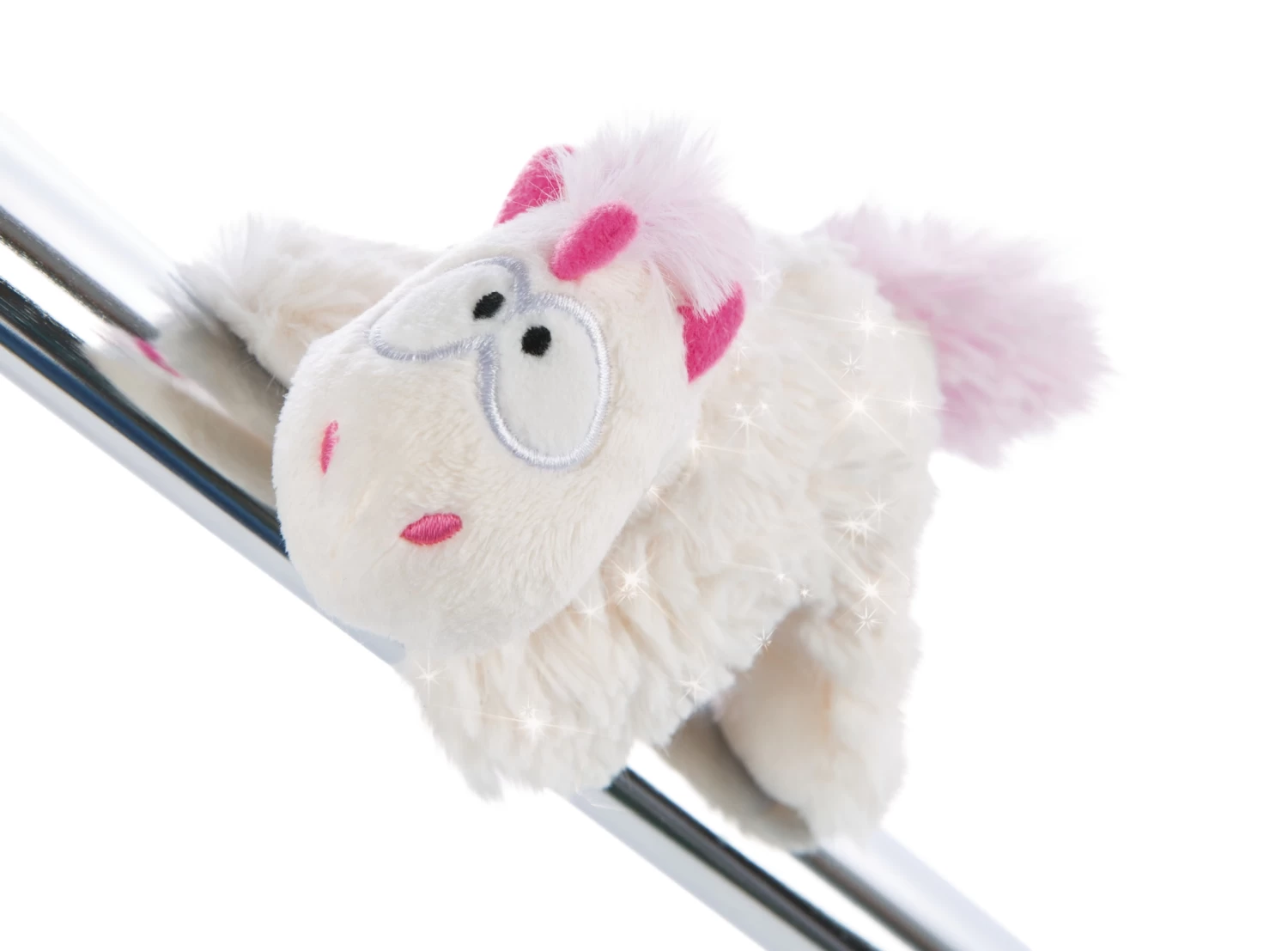 Aus weichem glitzernden Plüsch mit Augen aus Kunststoff
