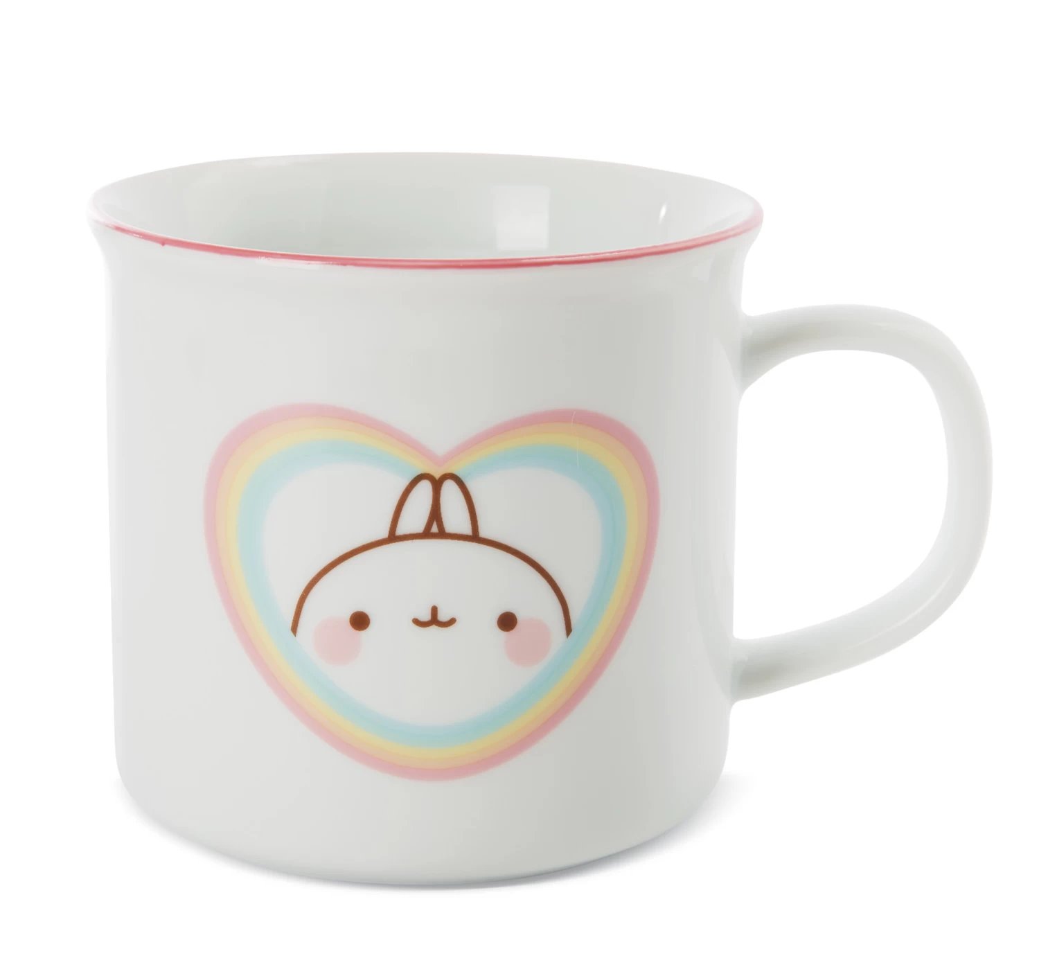 Molang mit dem herzförmigen Regenbogen konzentriert sich sehr die Verbreitung von zusätzlicher Positivität und Liebe für die Welt mit dem Motto „Rainbow always win!“