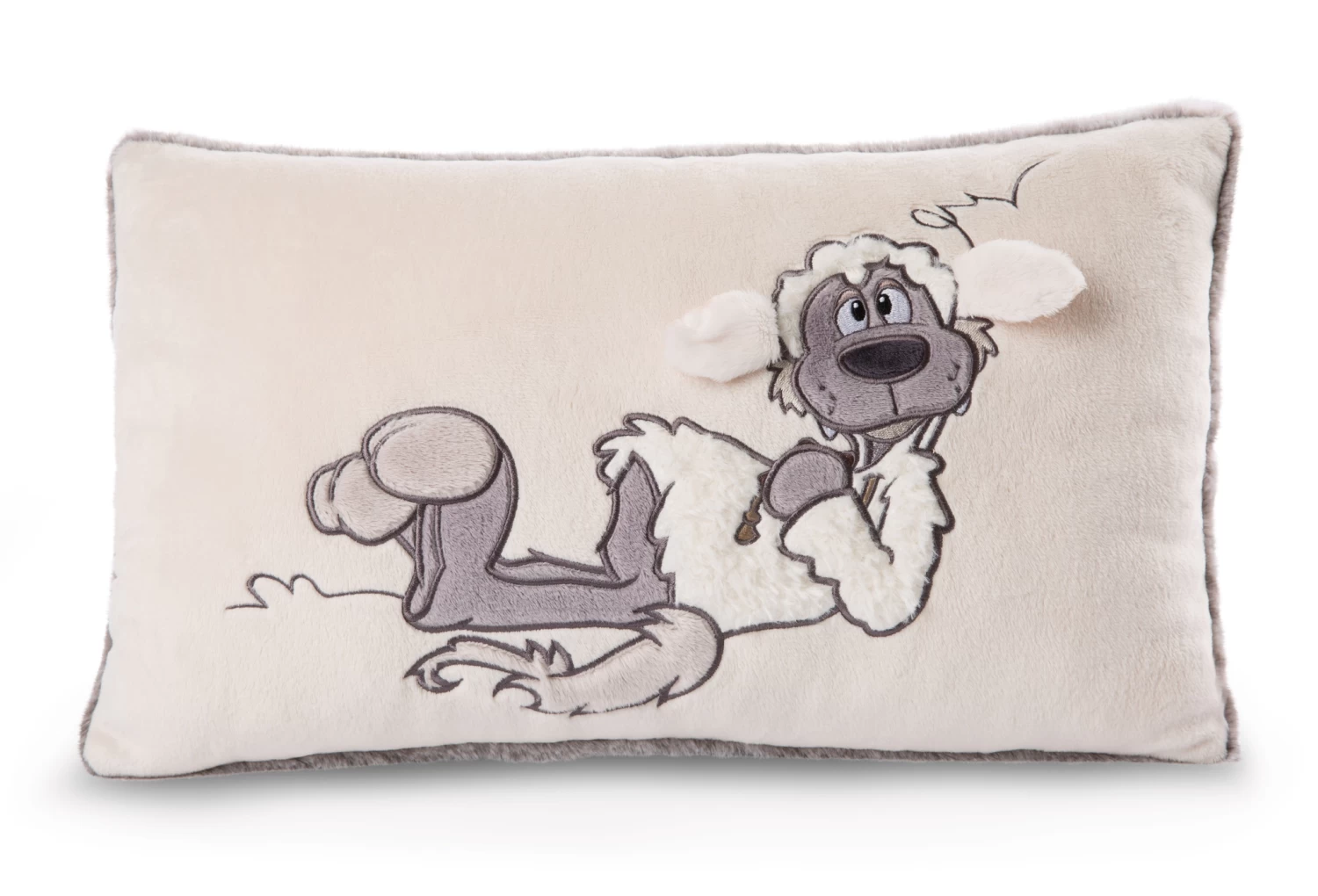 Die Ohren des Wolfes stehen aus dem Kissen heraus