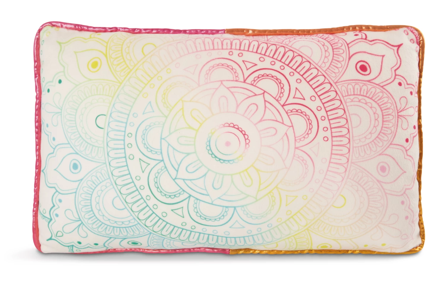 Die Rückseite ist bedruckt mit einem bunten Mandalamotiv