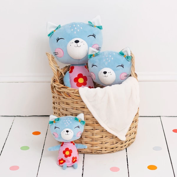 Aus kuschelweichem Plüsch mit aufgesticktem Gesicht und Nase aus Kunststoff