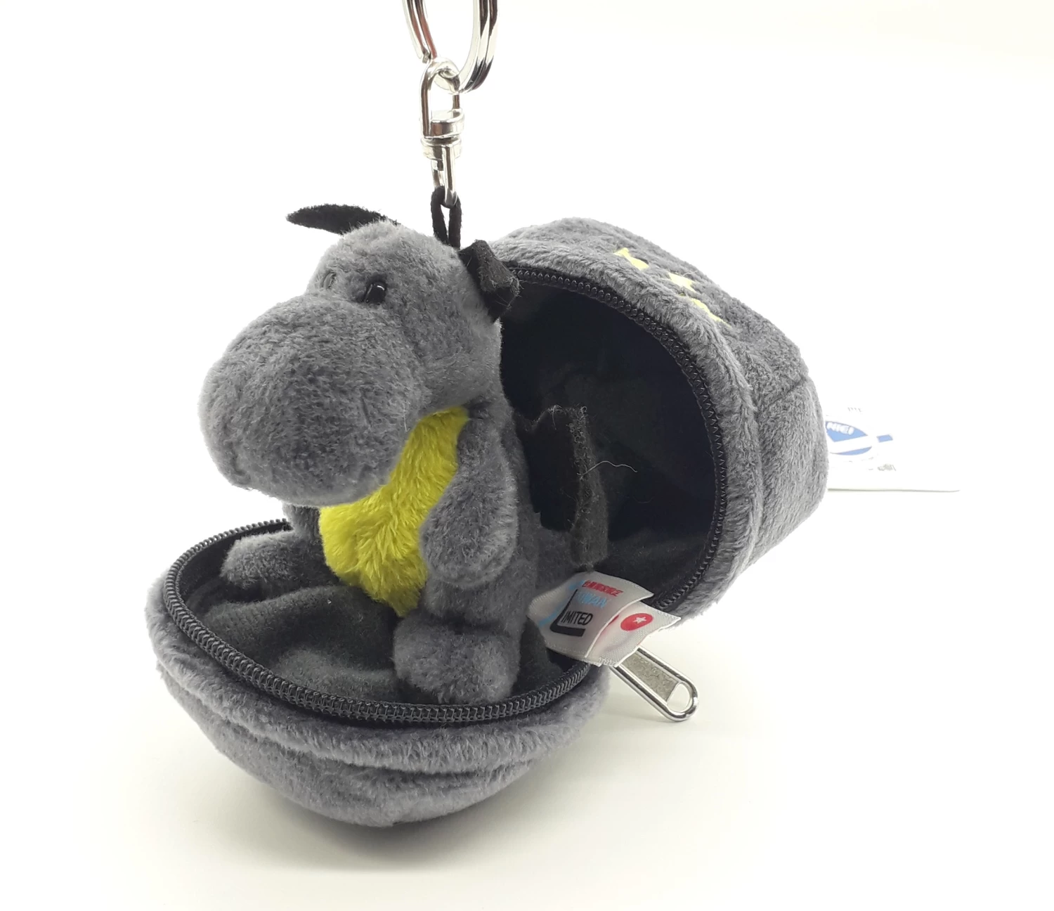 Der kleine Drache befindet sich im Inneren des Eies. Er ist leicht am Ei befestigt, damit er nicht herausfallen kann. Das Ei lässt sich mittels Reißverschluss öffnen.